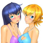 #推しのフォロワーが増えるかチャレンジ 由姫霙@yukimizore 様にskebで描いていただいた、【八津紫の衣装でチラリとぱんつを見せてくれるライダー】と【仲睦まじい褐色姉妹】(画像は切り抜き) 最近はコミカライズの準備でお忙しいので、skebはしばらく閉じているけど、フォローして応援しようや😁