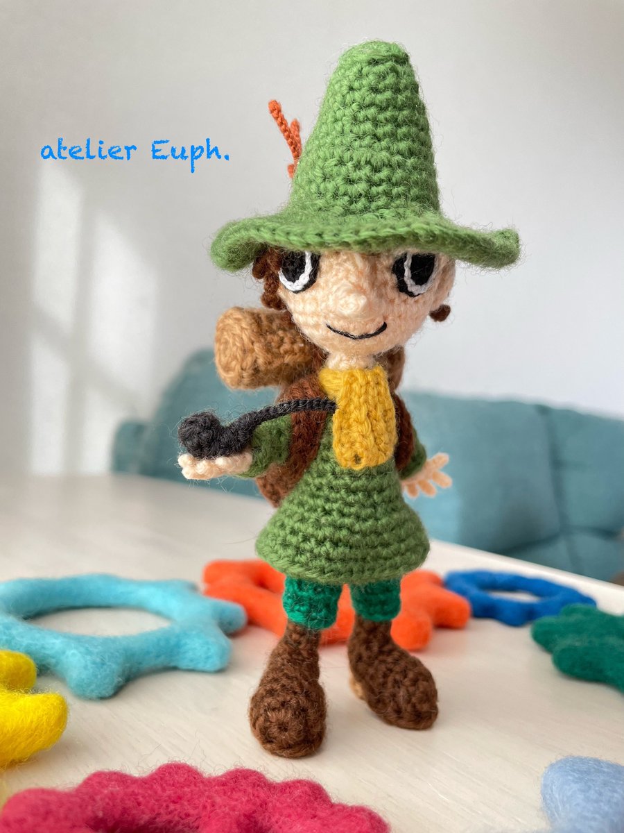 「大切なのは、自分のしたいことを自分で知ってるってことだよ」 自由を愛する旅人 スナフキンを編みました。 手に持っているのはパイプです。 twitter.com/i/web/status/1…