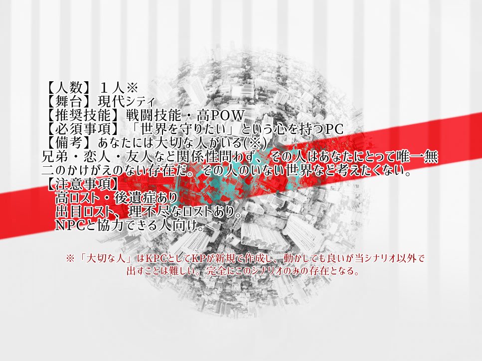 ◤クトゥルフ神話TRPG【WILL】 __これは反社会的組織に属する探索者の話。 ▼3/20~3/31、下記にて限定有料頒布 watasinohone.booth.pm ・秘匿4PL ・要地雷チェック ・PC/NPCとのRP重視 ・「探索者」を見つめ直すことを重視する。 ・このシナリオに救いはない。