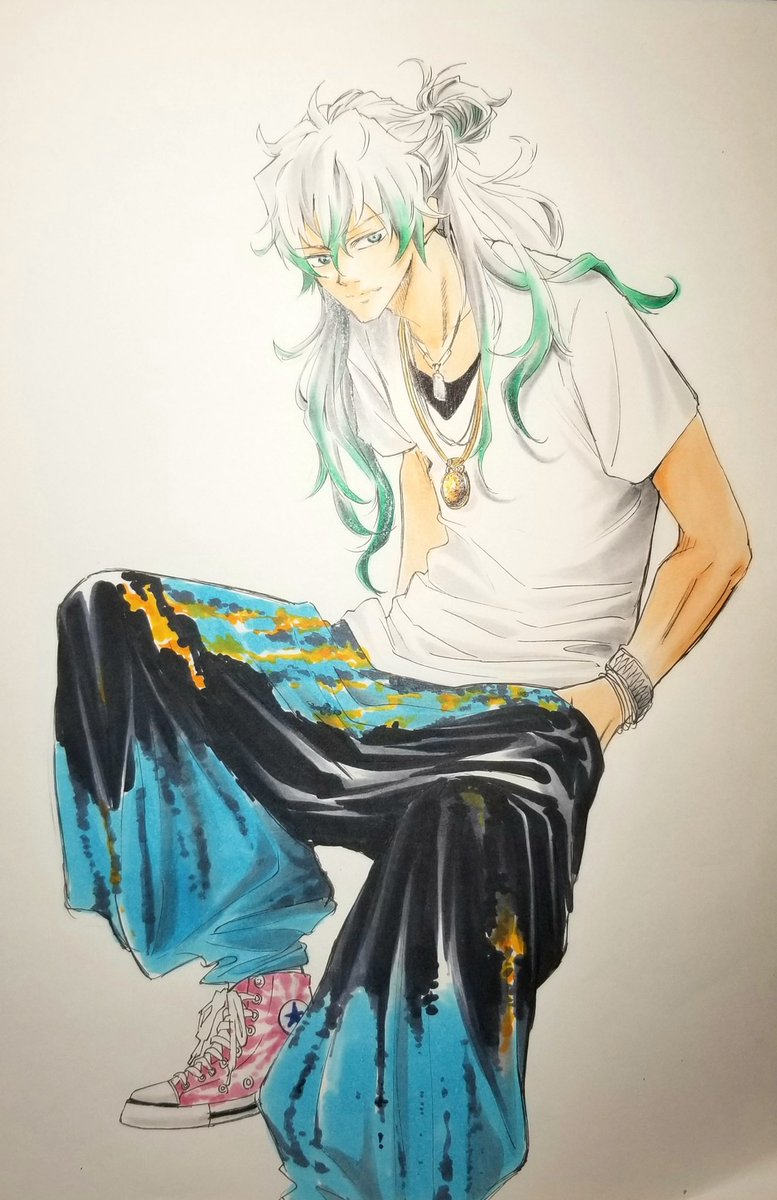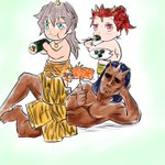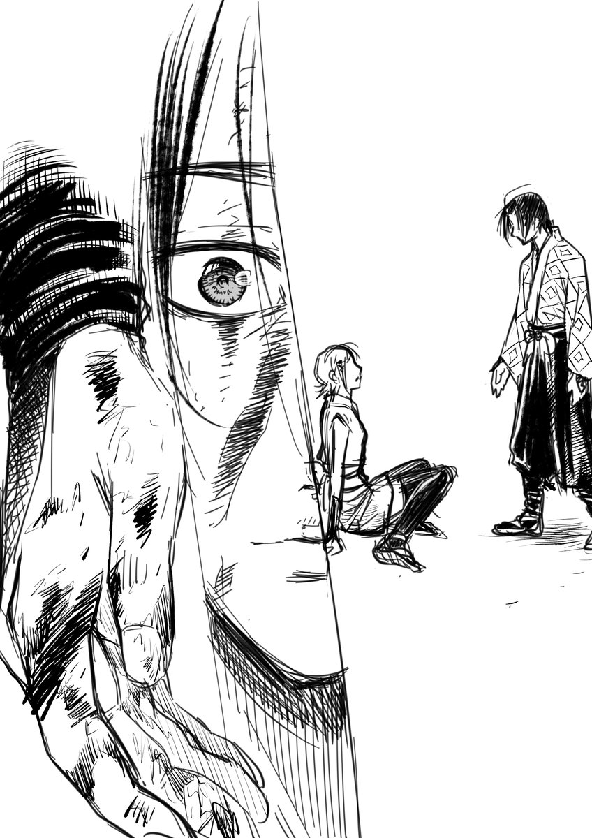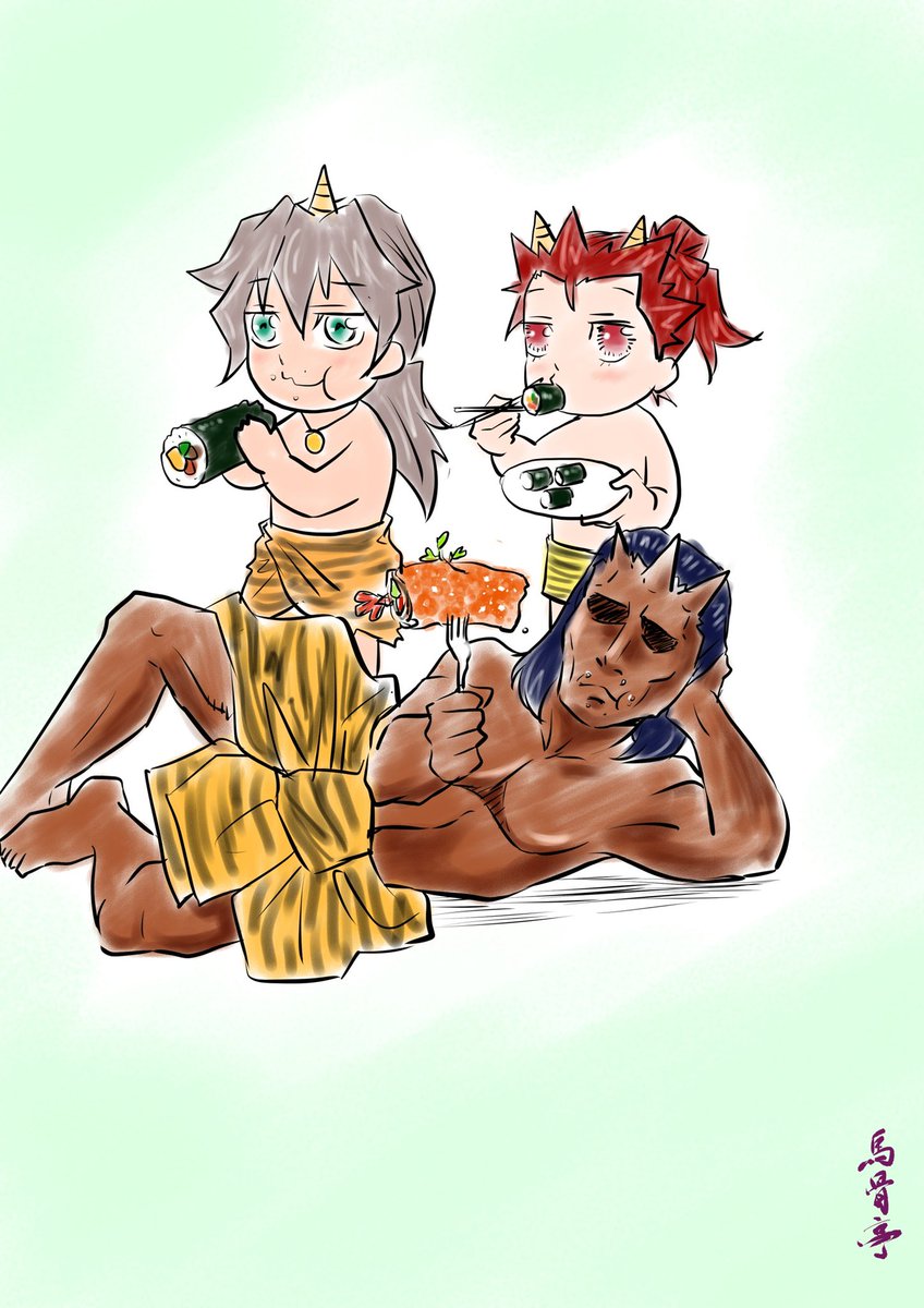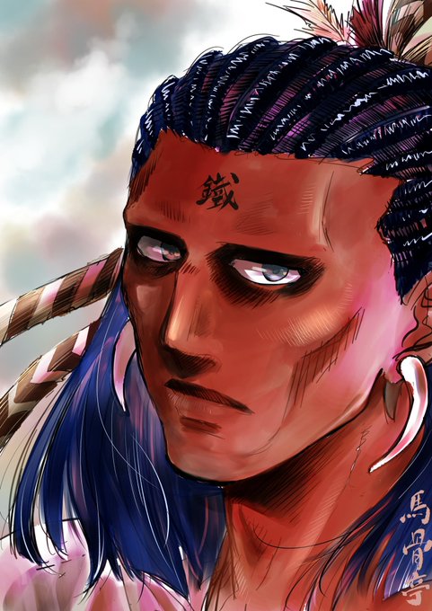 #三連休過去絵を貼りつけると優しいフォロワーさんが拡散してくれる "緋鉄の刀師”発表以前のものです。 麟太朗のお団子に簪(カンザシ)が刺さってるのが懐かしい😊 3枚目はナゾに伸びた“アゴ神w”ことエスニックコーデのシンさん。 4枚目は初めてリプライをもらった記念すべき絵😊