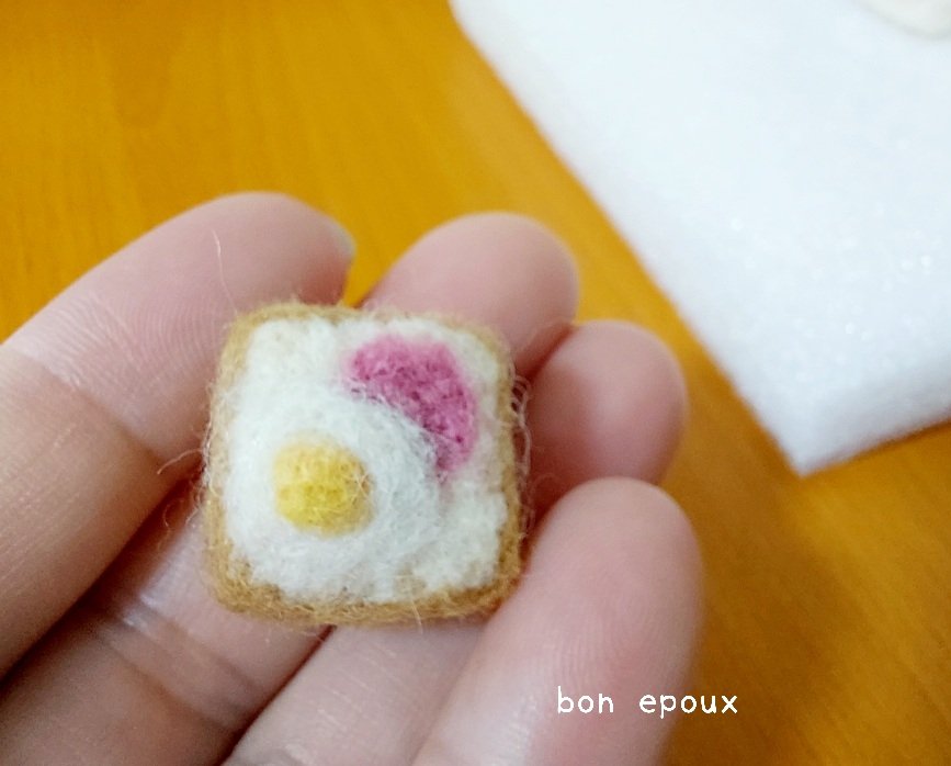 次はハムエッグトースト🍳 ちょっと小さすぎたから、一回り大きくしよっと。同じ大きさにするから3個同時進行! #羊毛フェルト #ボンエプー