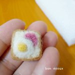 0 11 次はハムエッグトースト🍳 ちょっと小さすぎたから、一回り大きくしよっと。同じ大きさにするから3個同時進行! #羊毛フェルト #ボンエプー 23/05/31 09:16