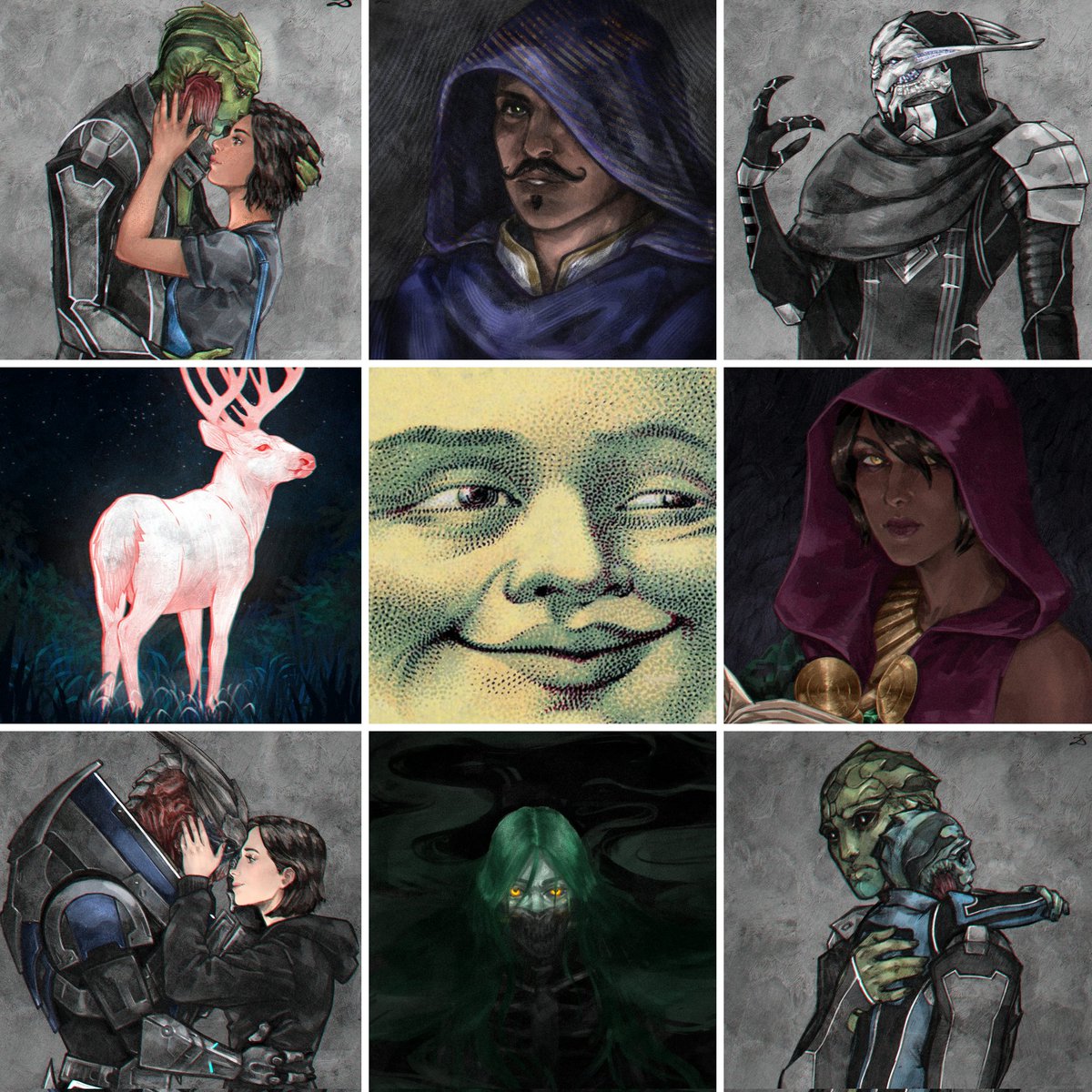 Hello #PortfolioDay, my name is Desi/Bonk! I'm a freelance artist from Bulgaria and I love to draw fanart, mostly #DragonAge and #MassEffect, and occasionally original art! 🥰💜