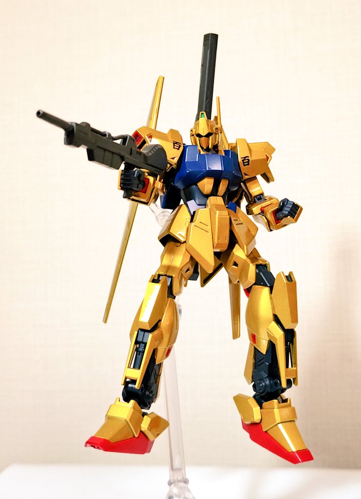 百式REVIVEを塗装してMGのボックスアート風にポージング 格好良く決まるけど初期ナンバーの方が体型は劇中イメージかな? #ガンプラは自由だ #ガンプラ好きと繋がりたい #ガンプラ #ガンプラの画像を貼るとRTされると聞いて