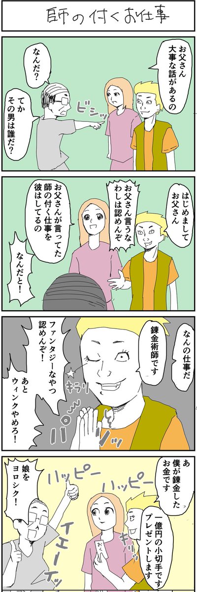 1 49 師の付くお仕事 #四コマ漫画 #漫画が読めるハッシュタグ #錬金術師 22/08/25 00:51