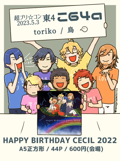 プリコンのおしらせです! 【5/3 東4こ64a】 HAPPY BIRTHDAY CECIL 2022 A5正方形/44P/600円(会場) 2022年セシル誕生日にTwitterへアップした18人の絵にぷちストーリーとぷち絵を新規追加した絵本です。新規絵1枚ありますが紙で欲しい方向け。 後日🐯さんに通販をお願い予定で通販価格は未定です。 twitter.com/boogaloobabyxx…