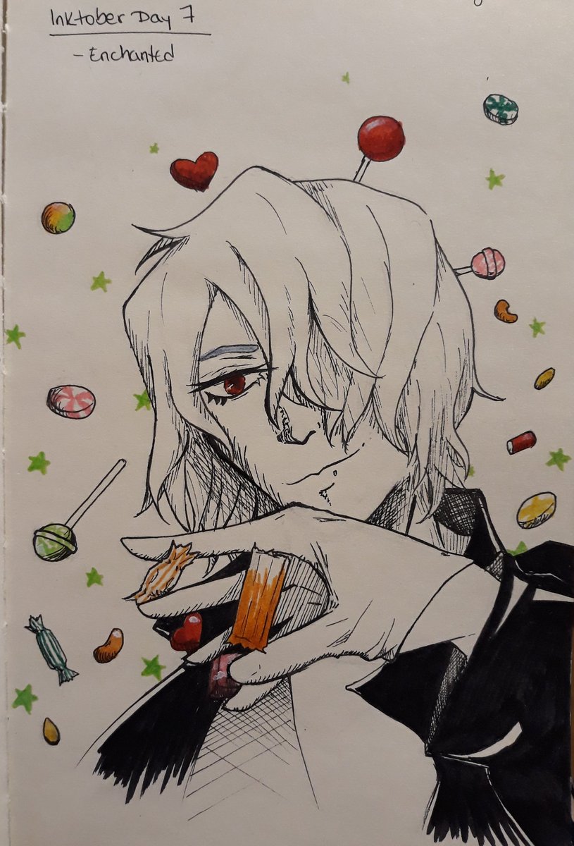 day 7: enchanted it looked better before i started inking i swear special thanks to my friend farah for lending me her eddings (for totally different purposes tho) #inktober2019 #inktober