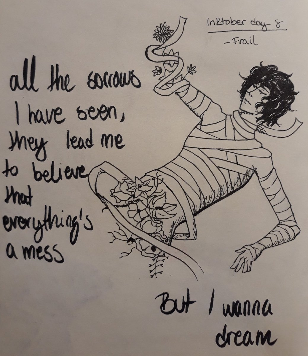 day 8: frail. «all the sorrows i have seen they lead me to believe that everything's a mess. but i wanna dream» (Imagine Dragons - Dream) #inktober2019 #inktober