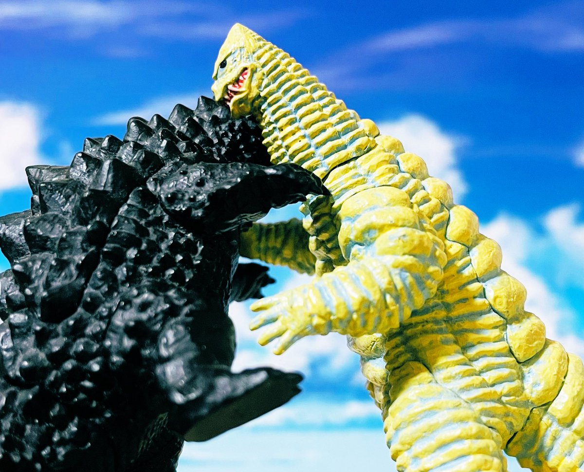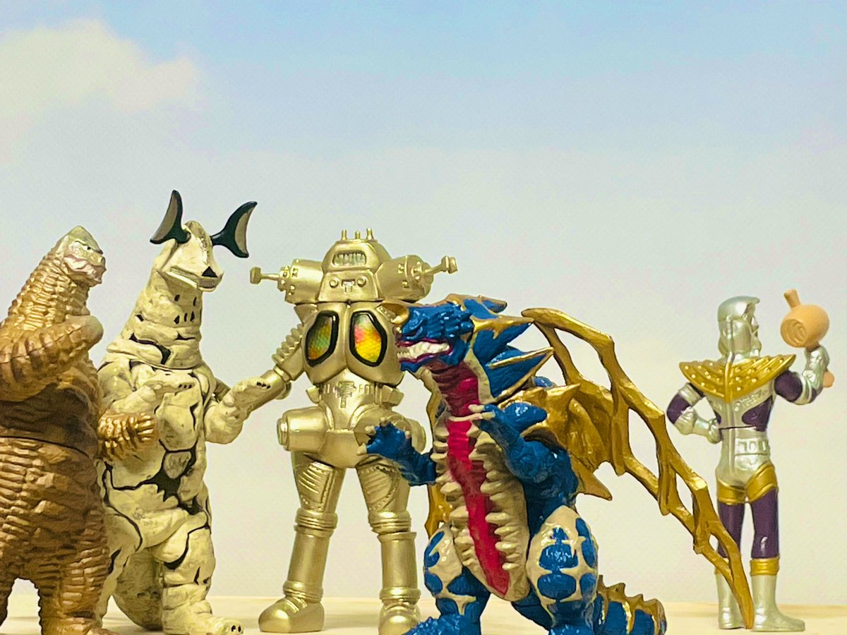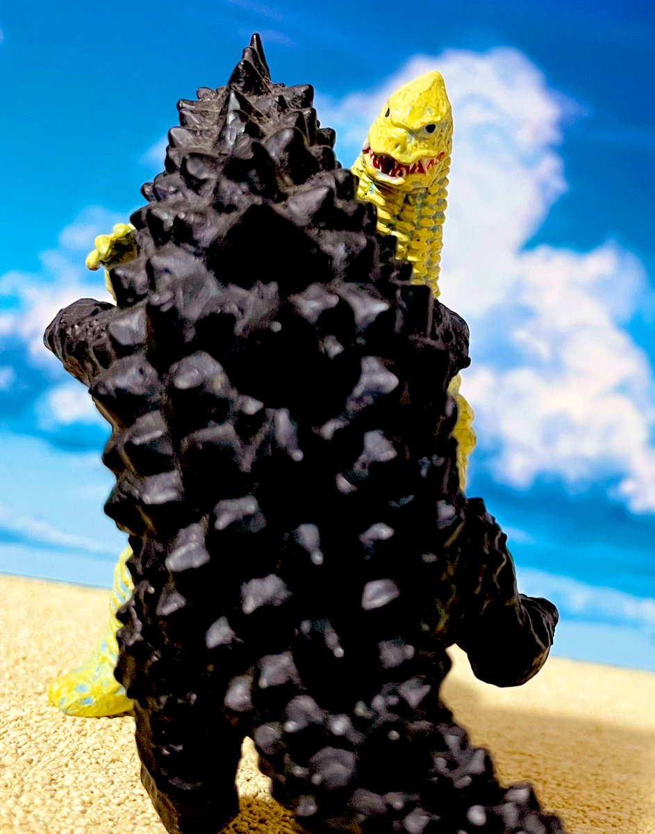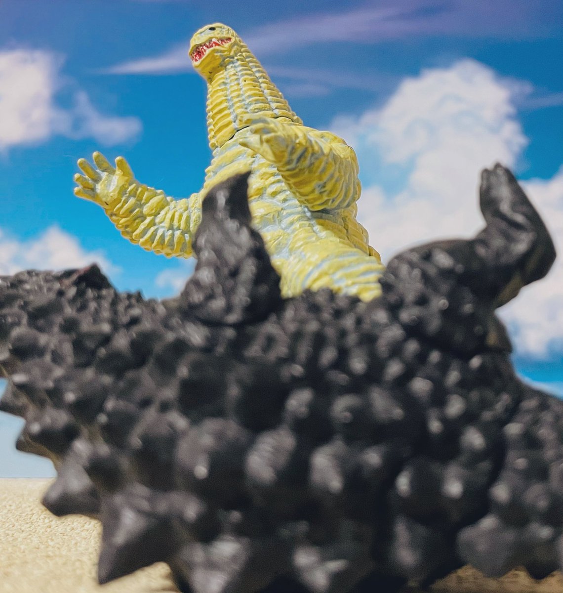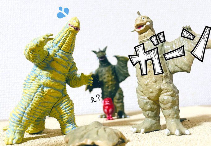 #夜のフィギュア撮影会 9/3 お題『フリー』 レッドキングvsマグラーは実現してほしかった怪獣対決😊✨マグラー逃げちゃったのでHGシリーズで😂👍笑 写真を撮っていたら、妻がレッドキングを見るなり「コーンコング」と命名して去っていきました🌽笑笑