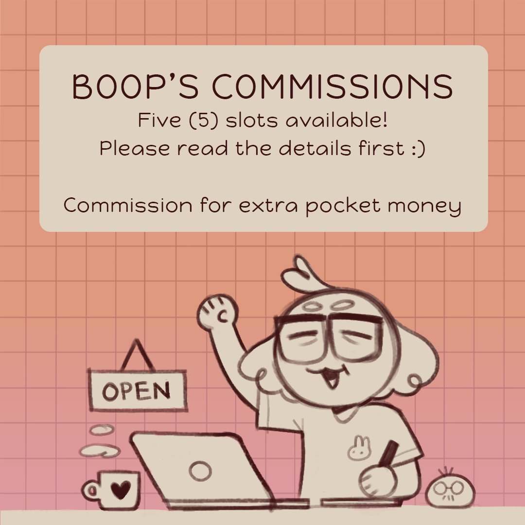 Commissions are open! ✨ I've been wanting to do this for ages and finally I have the spare time. Please read the slides first. If you're interested, just DM me! 🧡 (1/5) 🧵 Payments will be done through my Ko-Fi page >>> ko-fi.com/boopkopi ☕️