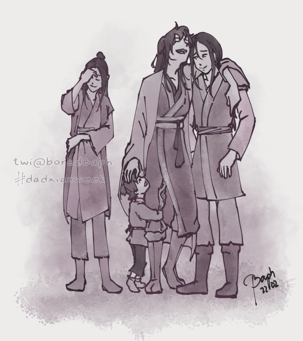 Day 4 #dadxianweek - 1 week late - free day - "First time drunk sizhui clinging to wwx and drunk babbling about how much he loves his a-die." (CriminalElf, 2022)