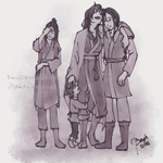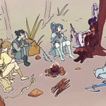 Day 5 #dadxianweek - 1 week late - mentor, teacher, qianbei - "[...] WWX showing Sizhui some dizi stuff while they’re all camped on a night hunt[.] Jingyi is hanging on every word, Zizhen’s enjoying it, Jin Ling is sulking and enjoying." (EvilNie, 2022)