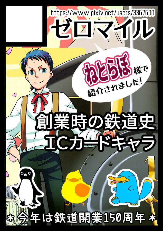 8/13(土) #コミックマーケット100 東4ホール ヤ-39a【ゼロマイル】 新刊は鉄道創業者たちの回顧談と広軌化論の話。 サンプル⇒ pixiv.net/artworks/10025… 既刊は ・ICカードキャラ本や車両擬人化 ・ねとらぼ様で紹介された鉄道創業期のマンガ 長州ファイブの歴史創作もあります。 #C100 #C100新刊