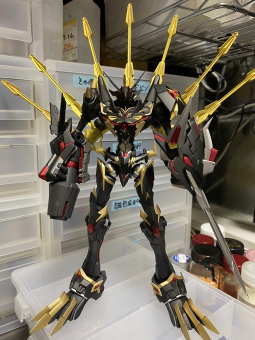 ガンダムフレーム完成😤 配線は赤、 シリンダーは全部金にするとしつこいと思い色分け 駆動部は銀 フレームはアイアン 途中角が浸食で折れてしまったので、もうダメージとしてそのままにした_(:3」z)_ #ガンプラ #ガンプラの画像を貼るとRTされると聞いて