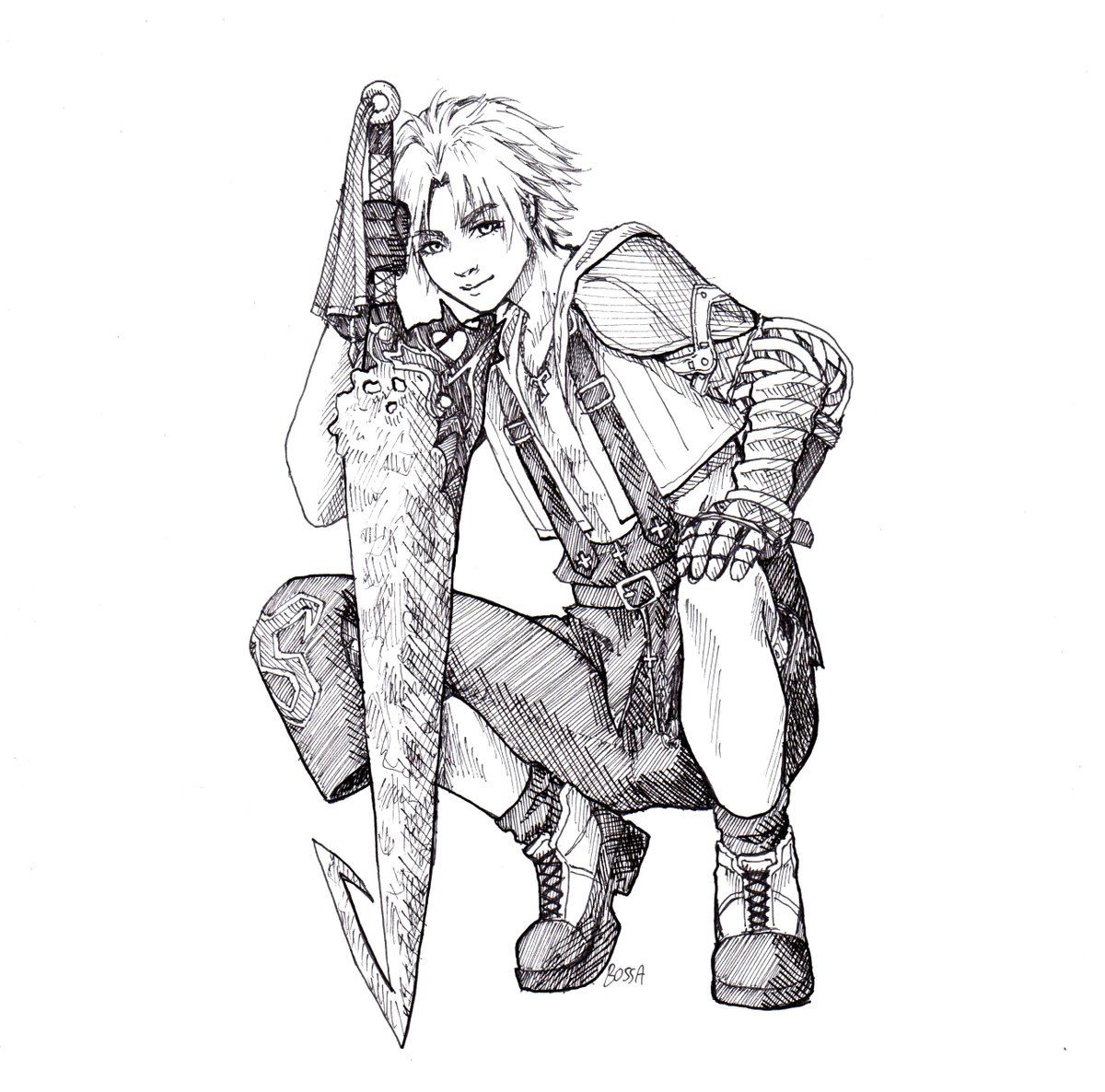 Day 5: Blade My favourite sword design and the himbo of my childhood #inktober #inktober2020 #drawtober #drawtober2020 #finalfanatasy #ff #ffx