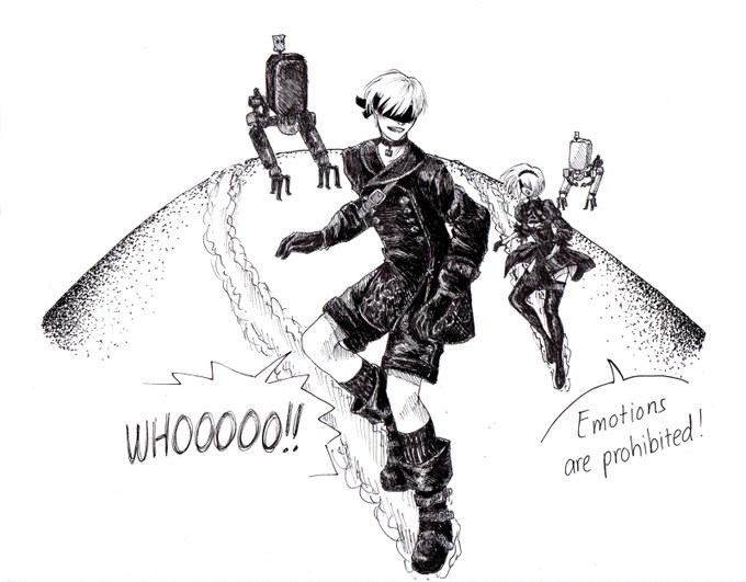 I'm merging days 12 and 13 because this is my twitter and I can do what I want Slippery & Dune #inktober #NieRAutomata