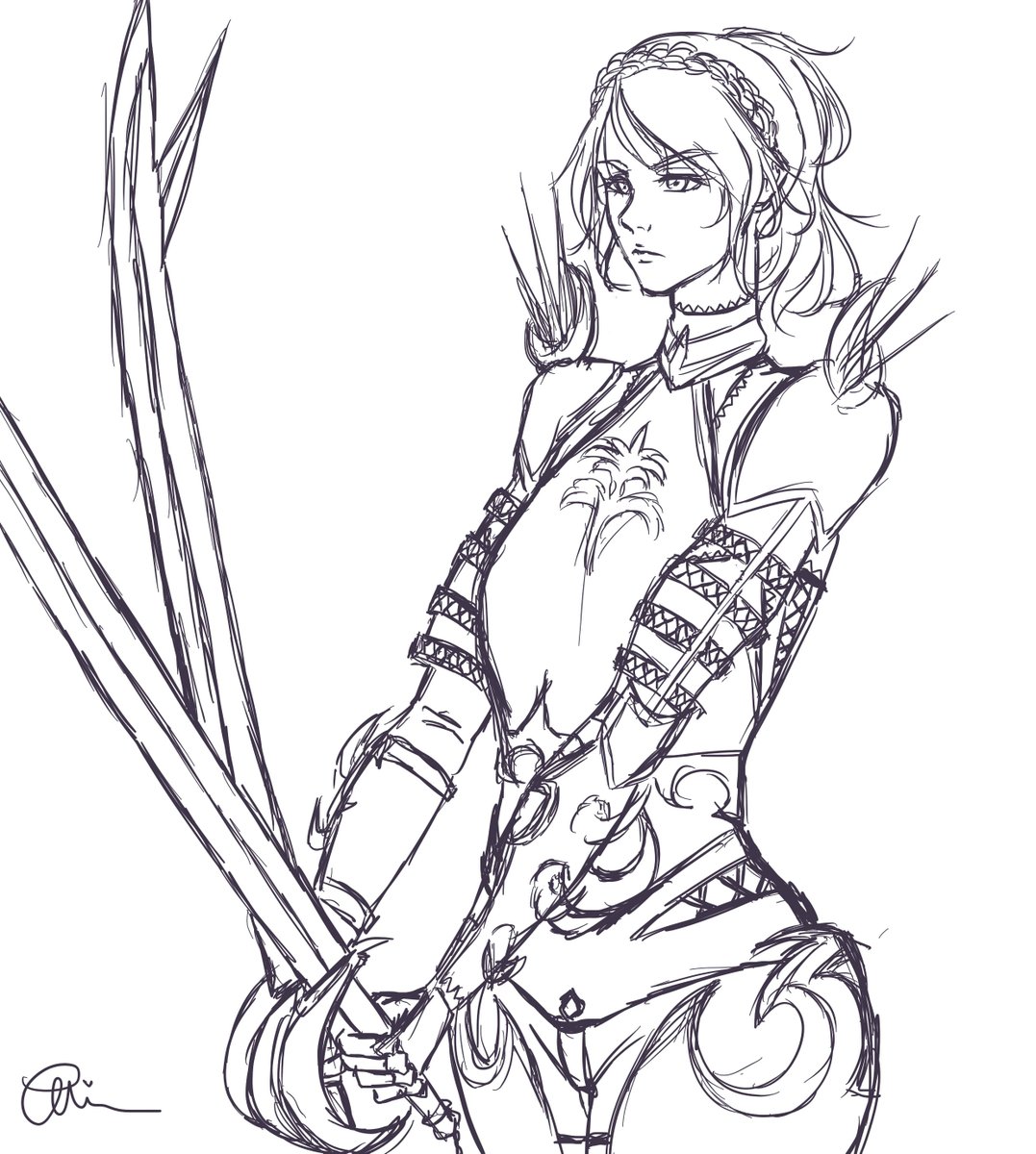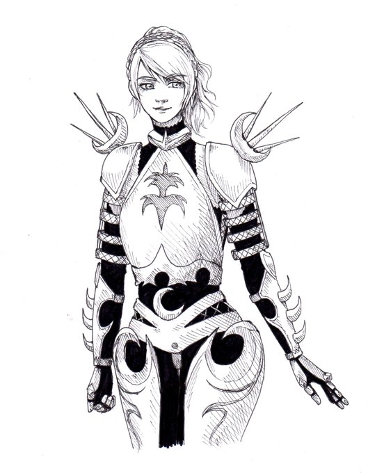 Day 14: Armour Armour design makes me want to rip my hair out, so I opted to re-draw my first ever attempt at it - reimagining Luna as a knight of sorts #inktober2020 #FinalFantasyXV