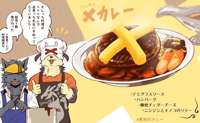 @inuzori_juzan #獣山学園犬ぞり部 #琥珀寮 #琥珀DEカレー 夜原センセに手伝ってもらいました