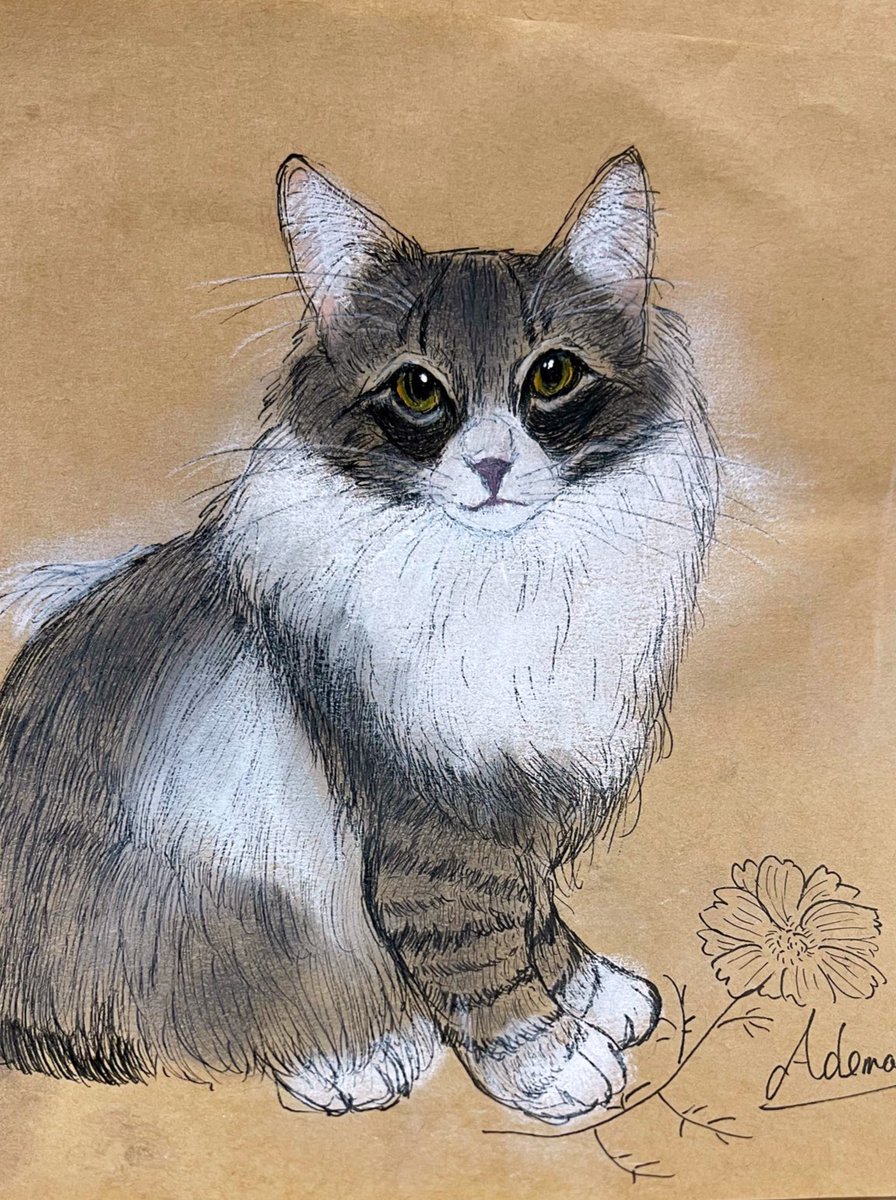 過去絵 5年くらい前に描いたうちの子 基礎的な事は何にも分からず、書くことが楽しくて仕方なかったあの頃 原画はかなり適当だったので、パステルで少し手直ししたけど 手癖はきっと変わらないね #過去絵を投げて絵を描いた気になろうキャンペーン #色鉛筆 #パステル