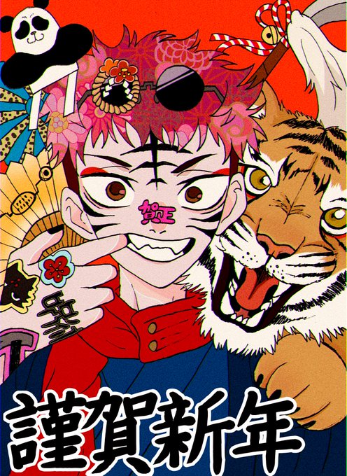 あけおめ~!!🐯⛩ #あけましておめでとうございます #呪術廻戦ファンアート #絵描きさんと繋がりたい