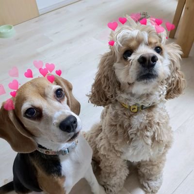 1 40 すだちとぼたん描いてみました〜 頭に果物が乗ってる差分も描きました #ビーグル #アメリカンコッカースパニエル #イラスト 21/09/02 17:48