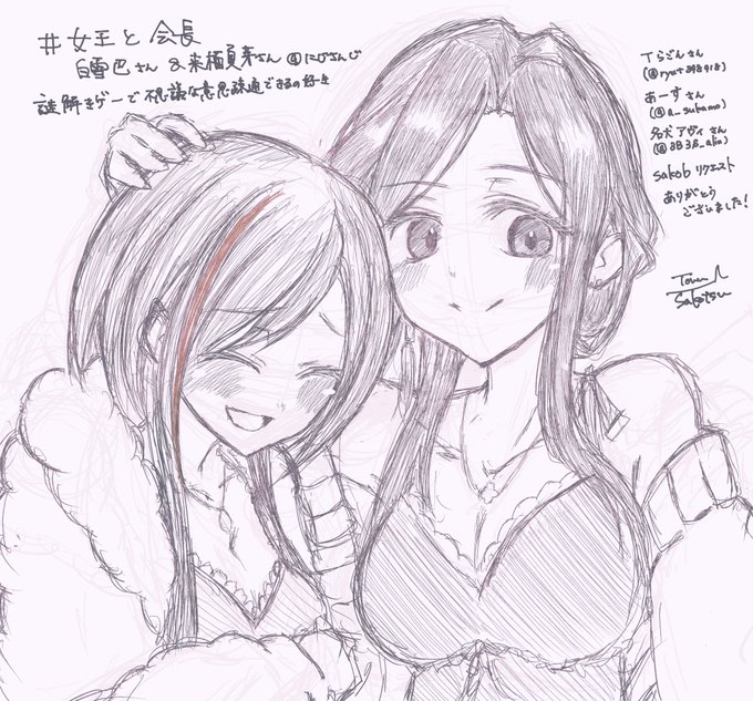 【sakob】女王と会長コンビ誰か描いてくれないかなぁ……あ、鎖骨さん描いてくれません? というわけで描きました。 Tらごんさん、あーすさん、名犬アヴィさん。リクエストありがとうございまし。