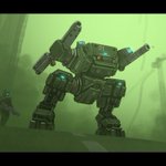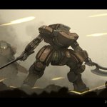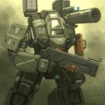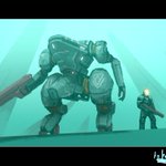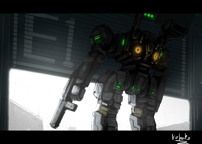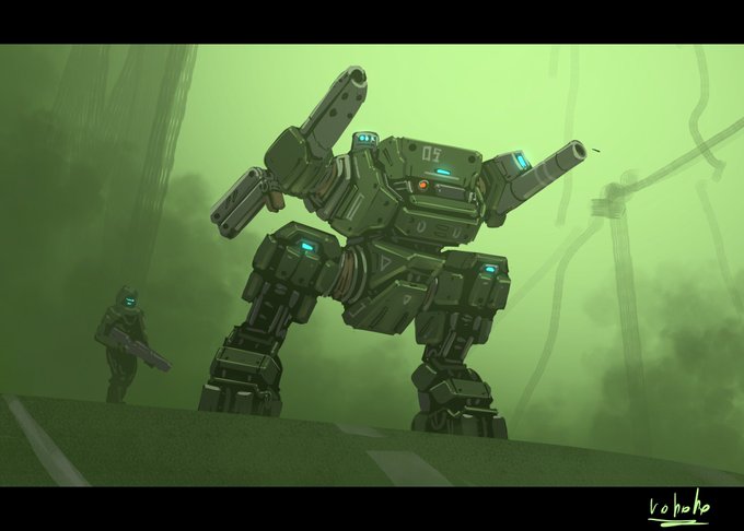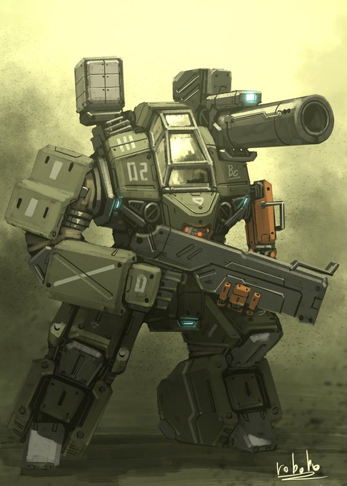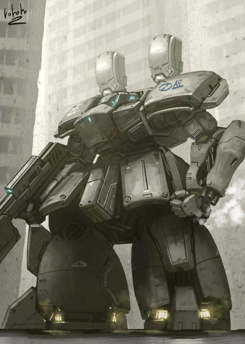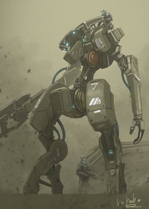 #背景版深夜の真剣お絵描き60分一本勝負 時間外でお題「魔術師の書斎」 "書斎(ガレージ)" 「この本の組み合わせだと速度は上がるが…」 機兵は魔術書に蓄積された魔力を動力源としていた。 魔術書の種類や組み合わせにより機体性能や特性が変わるため、専門の術師が調整を行っていた。