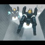 #背景版深夜の真剣お絵描き60分一本勝負 時間外でお題「ビックサイト」 "緊急避難令" 『おっほ!!かの聖地の背景で巨大ロボが対峙するというこの神構図に拙者、興奮を抑えきれず』 「言うてる場合か!早く逃げるぞ!!」