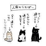 動物病院に電話してまめ&チビ親子を連れて診察行きますって伝えた瞬間、後ろで聞いてたろんさんが大慌てで2匹に密告(?)しに行ってて、やっぱりネコはネコの味方をするんだな…と感心した時の絵日記です #ろんの絵日記
