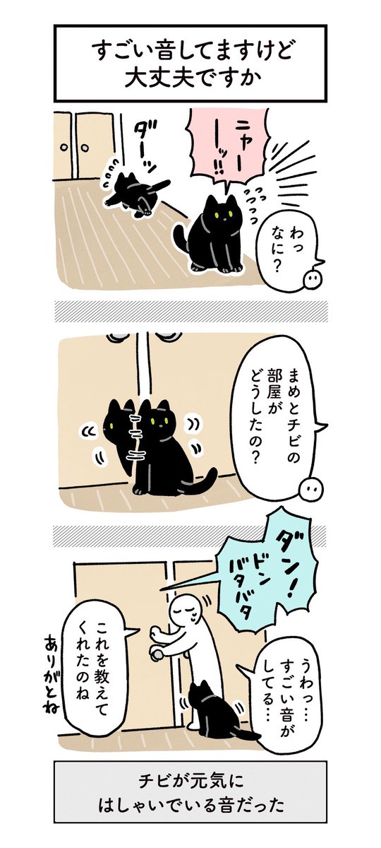 ろんとまめチビ親子のドア越しの交流 #ろんの絵日記