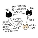 7055 43.2K 動物病院に電話してまめ&チビ親子を連れて診察行きますって伝えた瞬間、後ろで聞いてたろんさんが大慌てで2匹に密告(?)しに行ってて、やっぱりネコはネコの味方をするんだな…と感心した時の絵日記です #ろんの絵日記 22/12/17 20:35