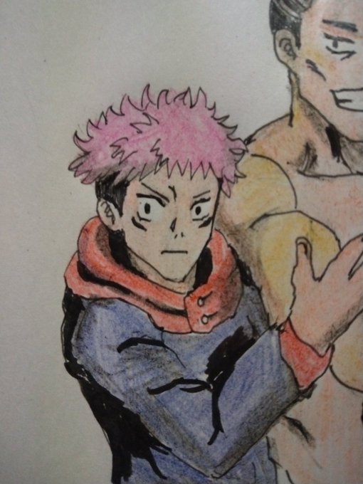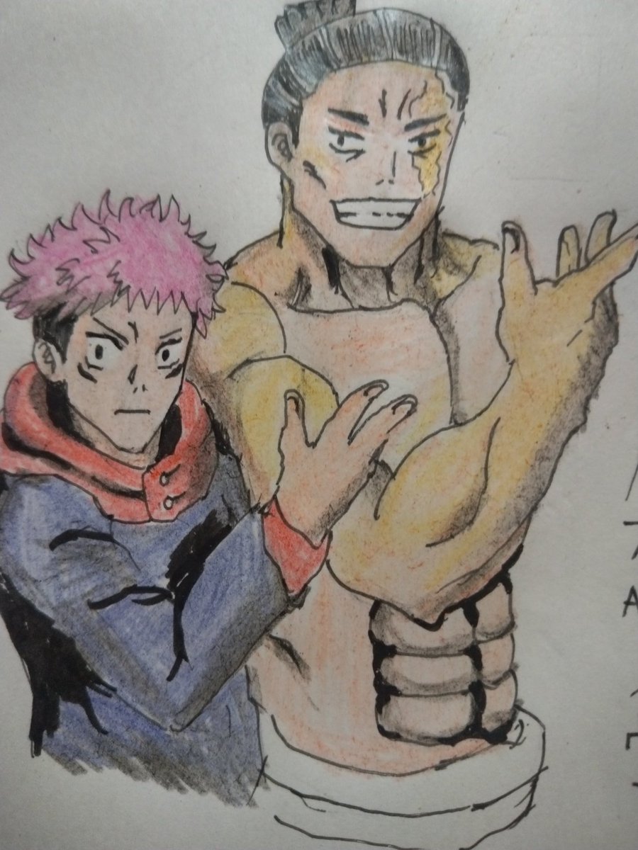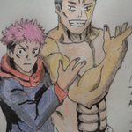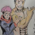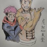 最近見始めた呪術廻戦🔮の虎杖と東堂を描いてみました。このコンビのバトル最高でした💥👊 #呪術廻戦ファンアート #呪術廻戦 #アニメ好き #アナログイラスト #イラスト好きと繋がりたい #虎杖悠仁 #イラスト練習中