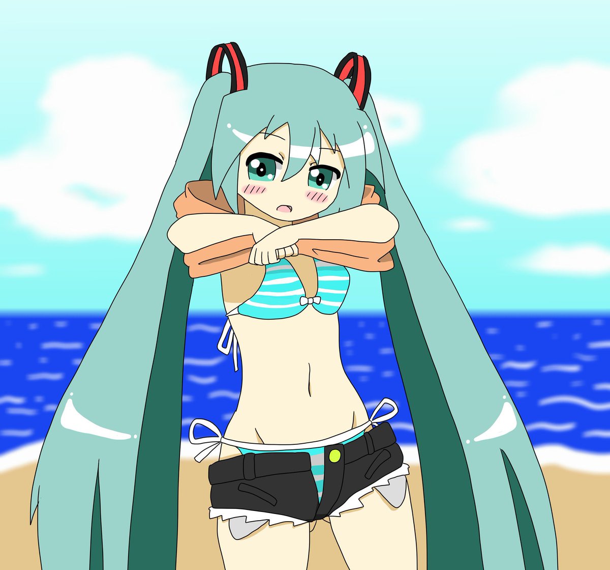 #みなさん去年の今頃はどんな絵を描いていましたか 脱ぎかけ水着ミクさん。