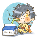 #週刊立体燭 @weekly_syoku お題🌱お風呂上がりの一杯 ストローで飲んでるのになぜかできるすわちゃんのおヒゲ