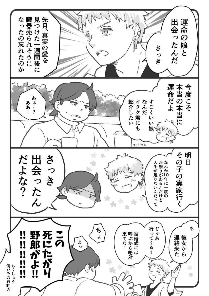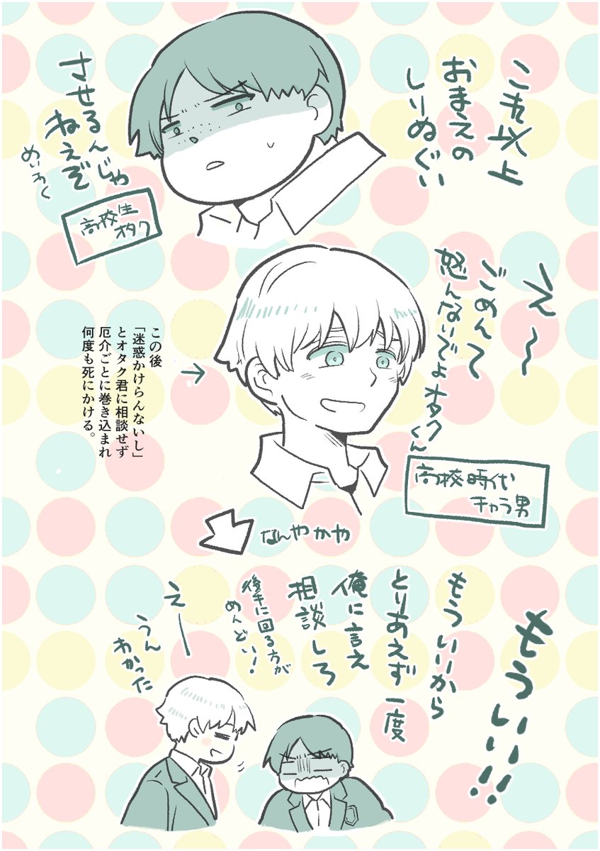 例のチャラ男くんとオタクくんのコンビのやつ描いた。