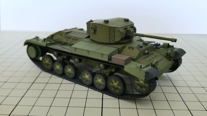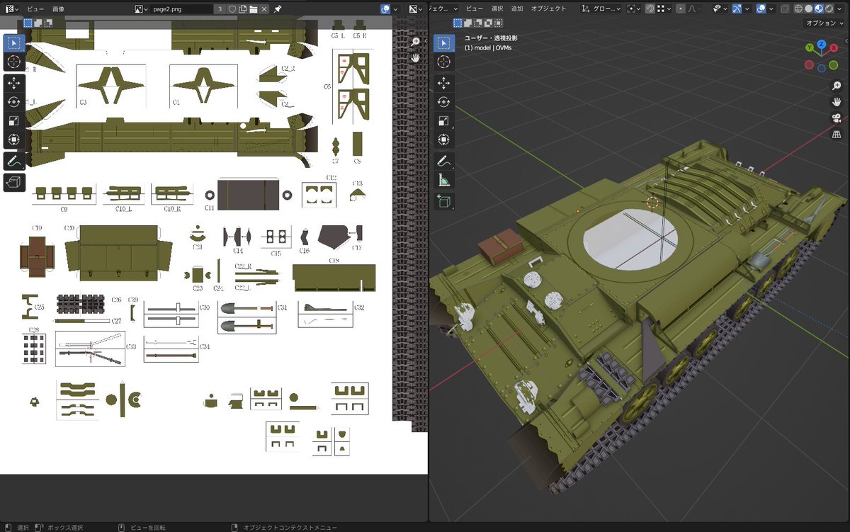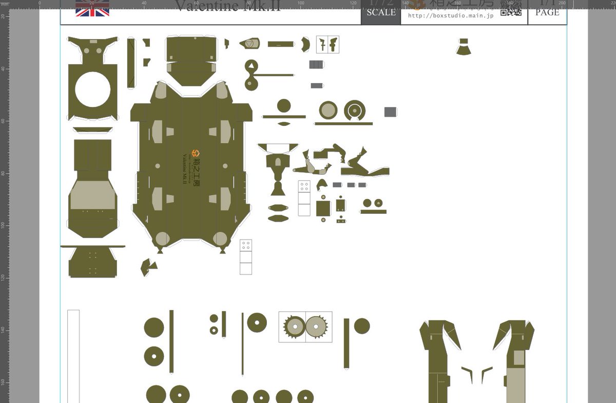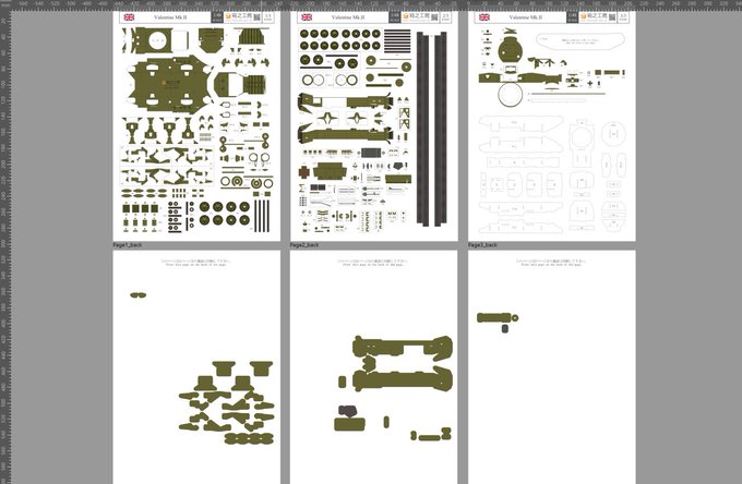 Valentine Mk.II wip#11 3Dモデルに反映しつつ2ページ目のテクスチャ描き込み中。 砲塔以外のパーツは1~2ページに収まりました。 #papercraft #ペーパークラフト