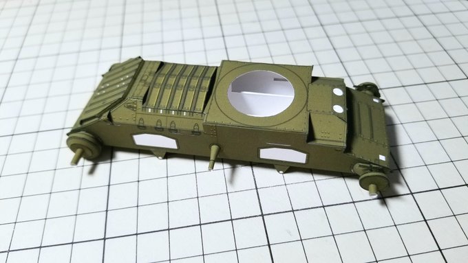Sd.Kfz.164 Nashorn Papercraft wip#11 戦闘室内のパーツの組み立て ここまでで用紙一枚目の全パーツを組み終えました。 #ペーパークラフト #papermodel