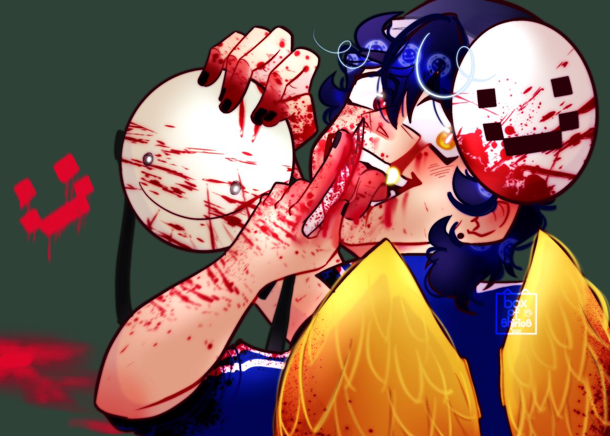 Spooktober Day 25: Serial Killer x Quackity CW: Blood I kinda like how this piece turned especially the hands & it was fun to experiment with depicting blood - - #Spooktober2021 #boxofspookies #QuackityFanart #quackity #quackityart #dreamsmp #dsmp #mcyt #dsmpfanart