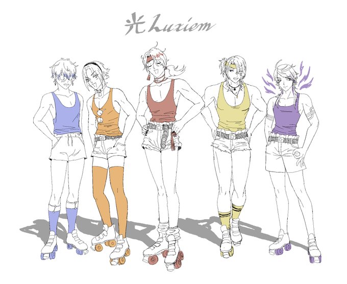 self indulgent illo of #luxiem as a certain rollerskating idol group from the 80s 💫 #Akurylic #Ikenography #Mystart #Drawluca #YaminoArt
