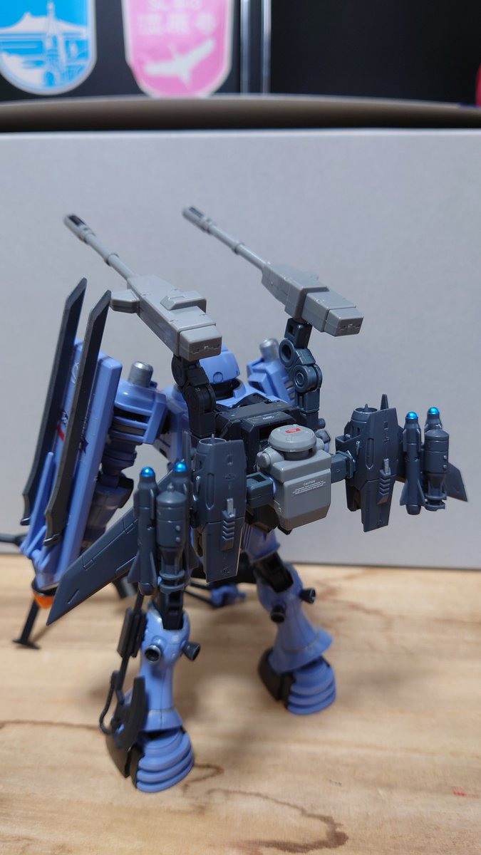 #ガンプラ好きと繋がりたい #ヅダ [ヅダ 正規採用改良型] 開発当時にあった問題を徹底的に見直しブースター等を一新させ新たに生まれ変わった機体 2連装キャノンやシールドに高周波ブレードの武装を追加され近~中距離戦闘、格闘戦能力も向上している。組替え式のバックパックはカスタマイズも可能