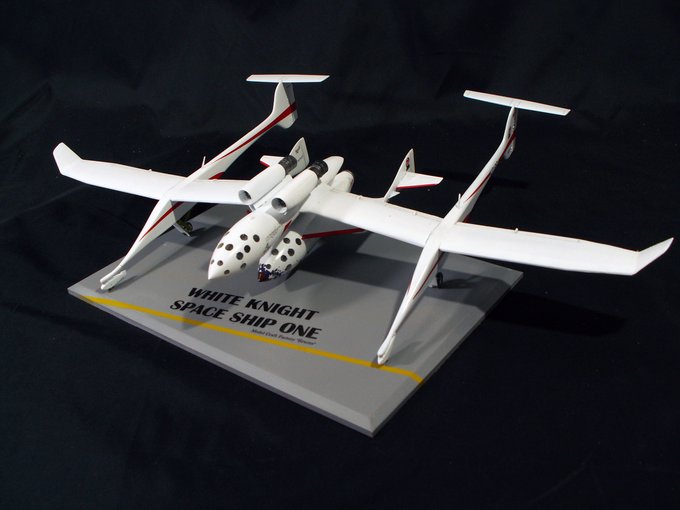 #これ作るの大変でしたプラモ Amodel 「ホワイトナイト&スペースシップワン」1/72 パーツは歪んでるし強度もない。クリアパーツは曇ってる。 機体形状の為に構造的に不安。重りを入れるスペースもないから自立もしない。 やたらと薄く破れやすいデカール。 完成できただけで奇跡みたいなプラモ。