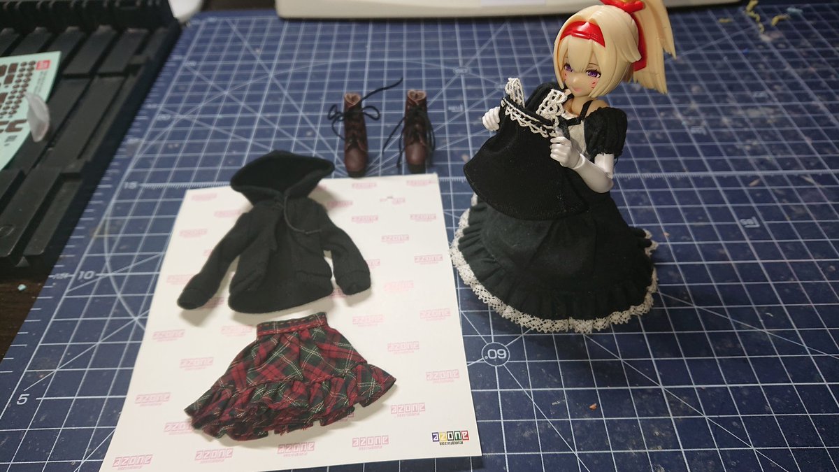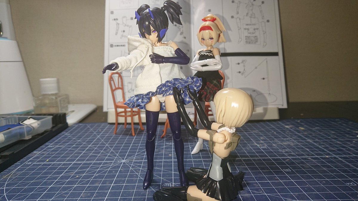 ちなみに朱羅忍者が着てるのは、アゾンインターナショナル様の「1/12BlackRavenClothingサロペットカジュアルドレスset」他ソックスとかとかどす。 #メガミデバイス #アゾンインターナショナル