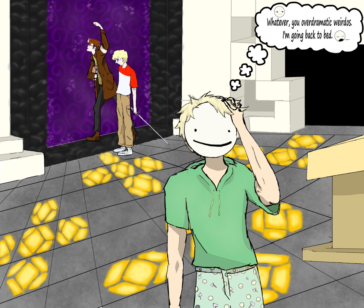 I just liked the idea of Dream after what must've been a very confusing few minutes. Plus, cute Dream PJ pants. #dsmpfanart #dreamfanart #wilbursootfanart #tommyinnitfanart