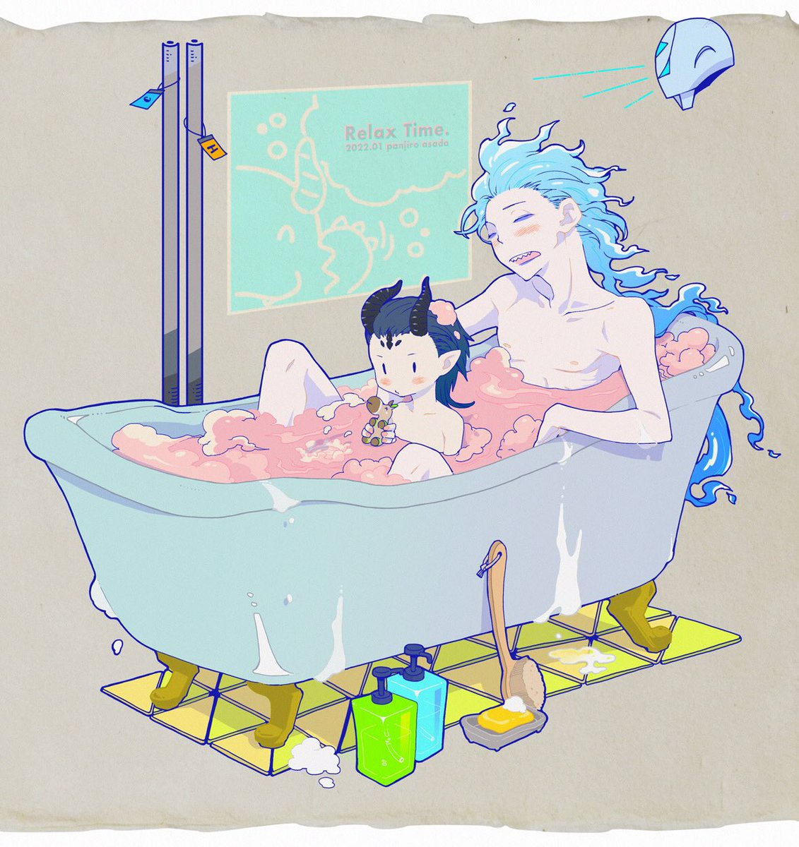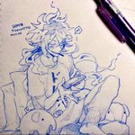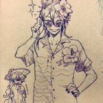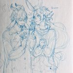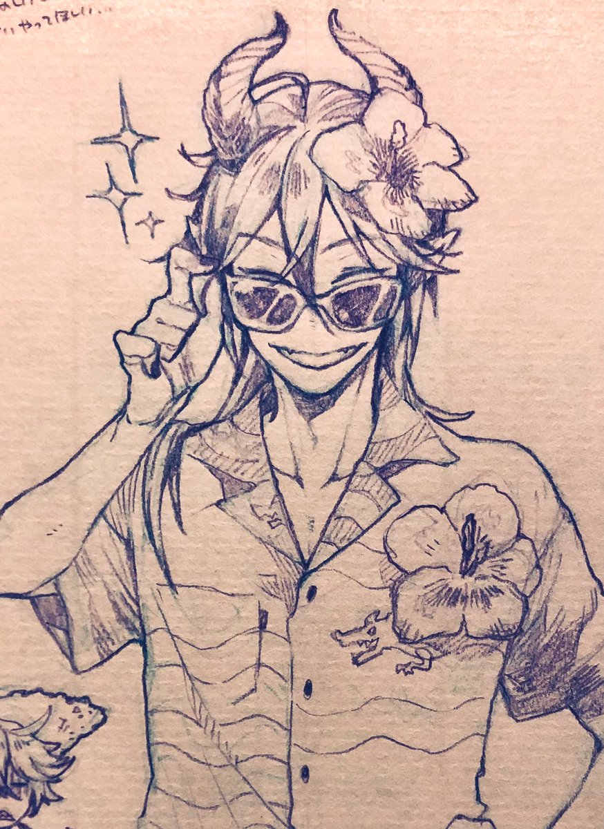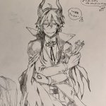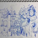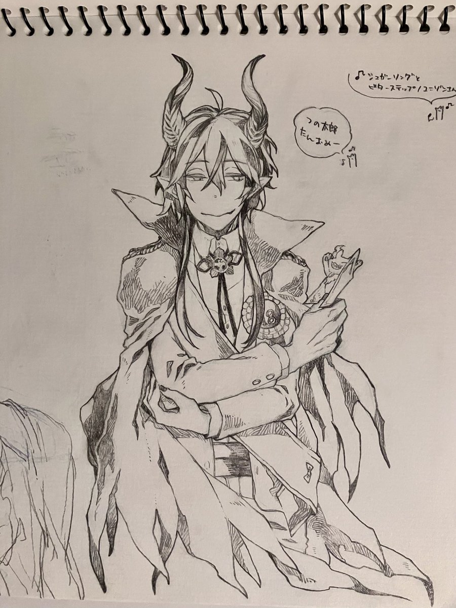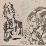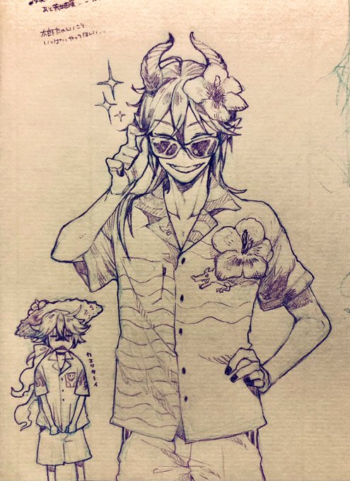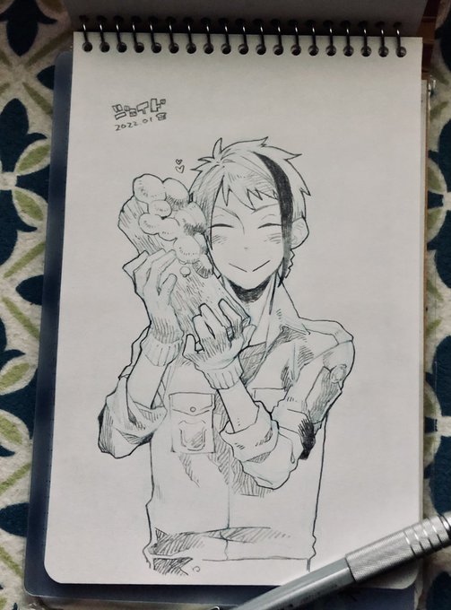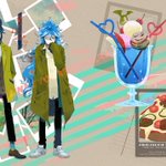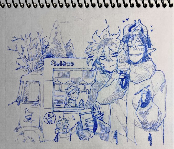 描きました。 この後のツリーに続く流れからの、ジェラート屋さんに寄れてニコニコ若様。 若様の笑顔はプライスレスだがそれはさておきあばらへのダメージはそこそこであったイデシュラくん。お宿着いたら若様に治癒魔法してもらおうな。 twitter.com/bread2ilow/sta…