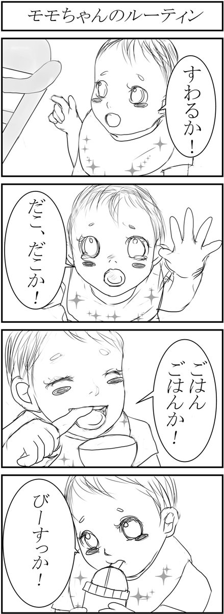 ちょうど昨年の今頃の娘。1歳4ヶ月頃。このころから既にクセがスゴいな。して欲しいものを〇〇か!という語尾でお願いしてくる娘です。ameblo.jp/breezy-dawn/en… #イラスト #4コマ漫画