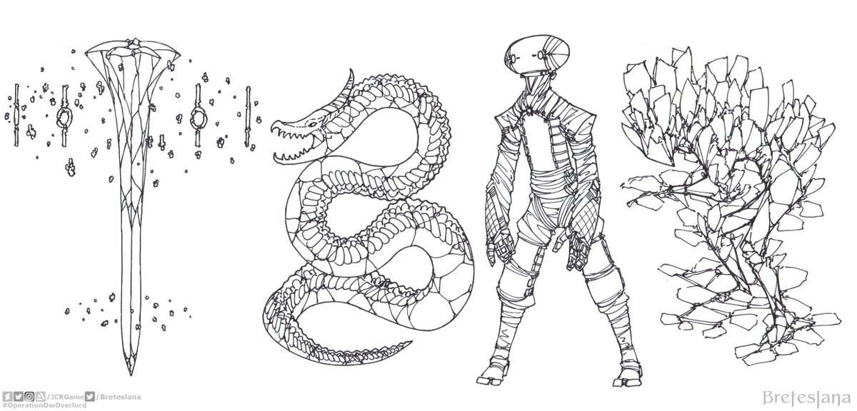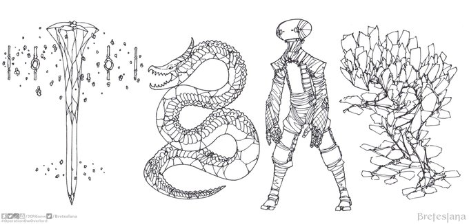 #Breteslana (late) #Inktober #Inktober2020 - fifth set. 17-Storm. 18-Trap. 19-Dizzy. 20-Coral. #OperationOwOverlord #golem #giant #serpent #dragon #fantasy #ink #sketch #drawing #anime #manga #conceptart #conceptober