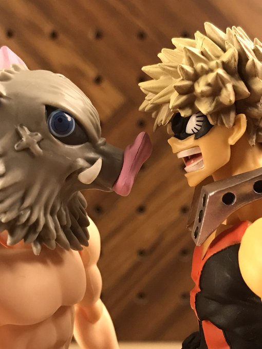 #オモ写 爆『んだてめェ‼️ヴィランみてぇなツラしやがって』 伊『おまえこそ鬼みてぇな顔しやがって💢俺がぶった斬ってやる』