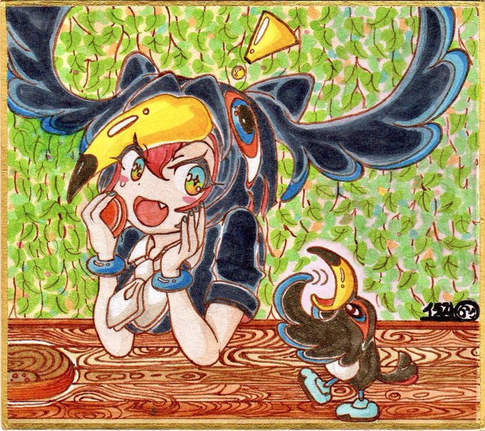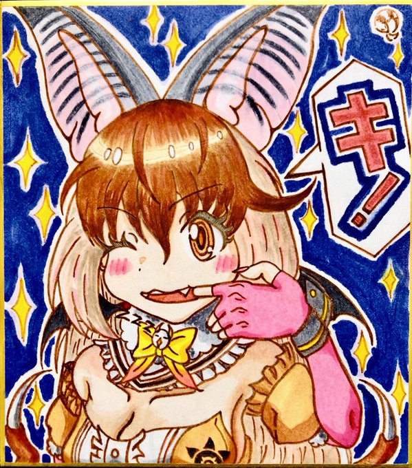 0 4 アヤネちゃん🧸 #プリコネR いつもお世話になってる方のために、描きました😊小色紙。塗りはコピックスケッチ🖍 22/07/31 17:42