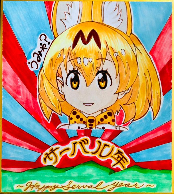 37 128 皆さん~明けましておめでとう! 今年の干支は…"サーバル年"❗️ミンミ様のご尊顔を初描きおこしました✍お納め下さい 22/01/01 07:55