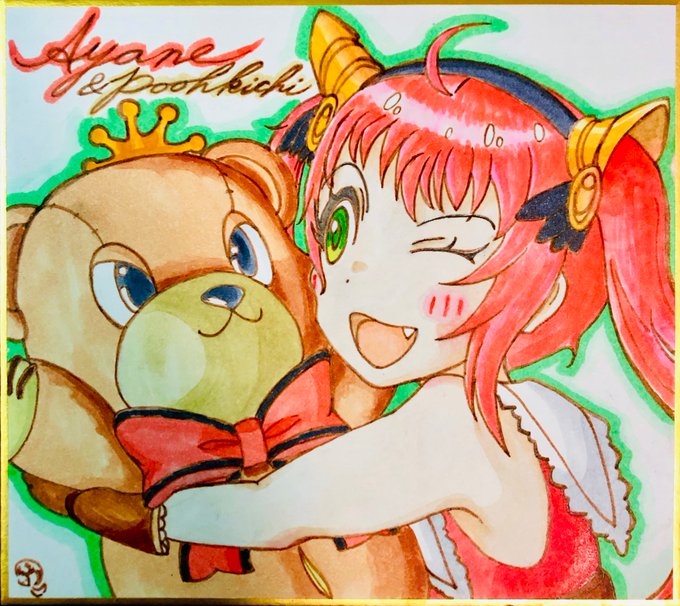 アヤネちゃん🧸 #プリコネR いつもお世話になってる方のために、描きました😊小色紙。塗りはコピックスケッチ🖍